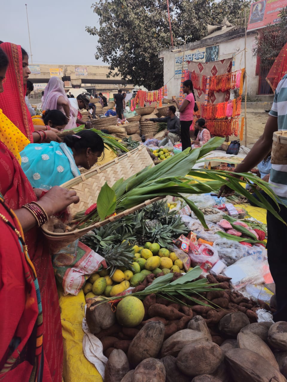Thekua – the traditional sweet made of wheat, jaggery & ghee. Bananas, coconuts, sugarcane & raw milk are offered. Kaddu-Bhaat and Chana Dal mark the end of fasting.